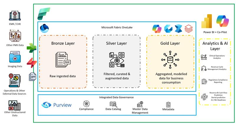 - Data Platform: Microsoft Fabric (secure, HIPAA-compliant cloud environment)