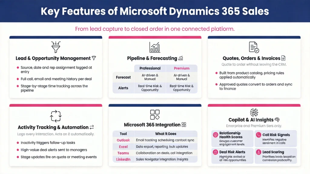This is the operational core of Dynamics 365 Sales, and where most teams see the earliest return.